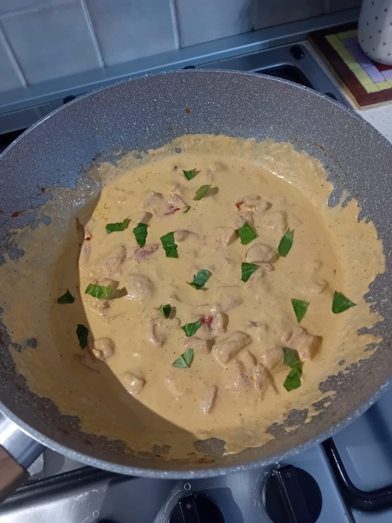 Volte o creme para a frigideira e adicione o tomate e o manjericão picado e prepare a massa. Reserve um pouco de água do cozimento que servirá para misturar a massa com o creme e deixe em fogo médio por alguns minutos