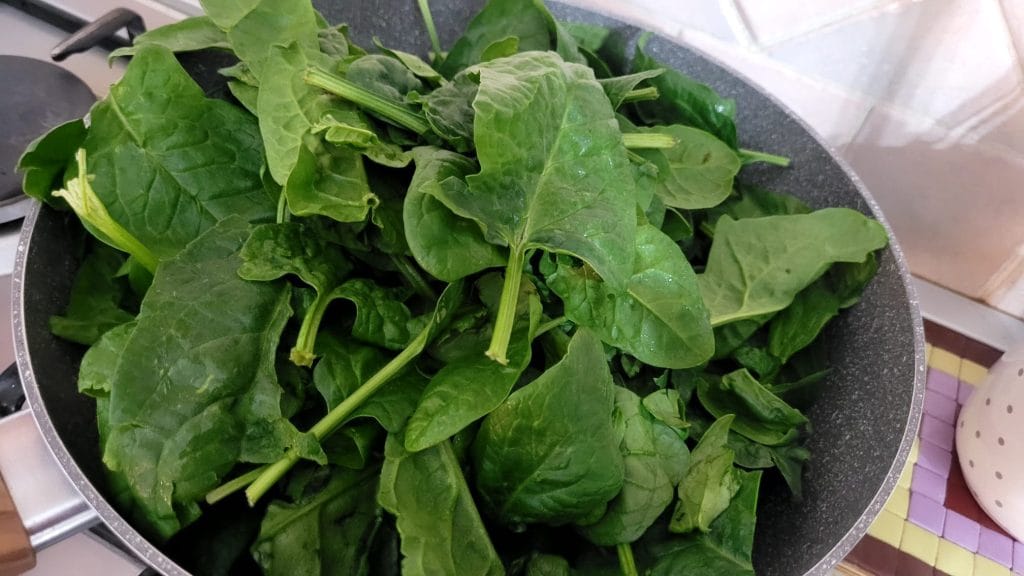 Comece pelo preparo dos espinafres que precisarão ser resfriados, lave-os e seque-os