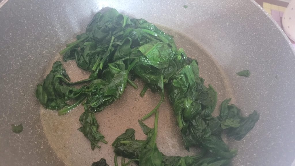 Adicione os espinafres, cozinhe em fogo médio, coberto com uma tampa, mexendo de vez em quando
