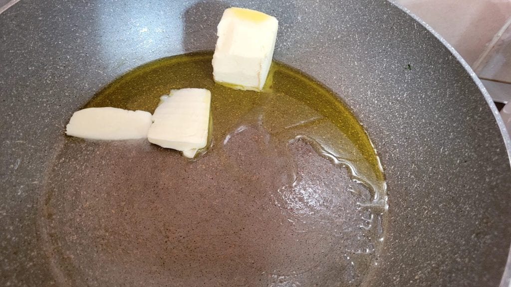 Em uma frigideira grande, derreta a manteiga e o óleo