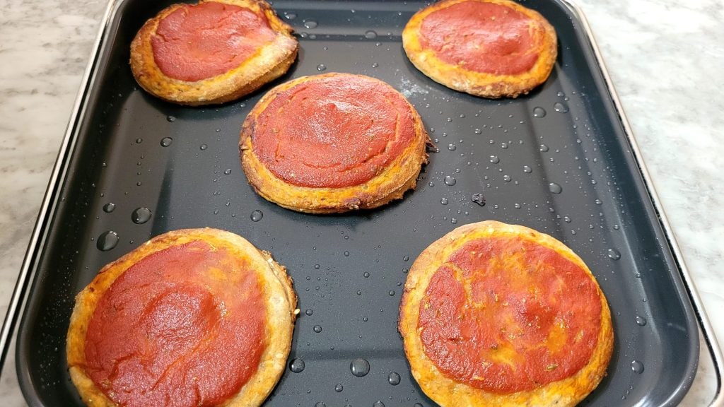 Retire a forma, as pizzetinhas devem estar já douradas em cima e embaixo