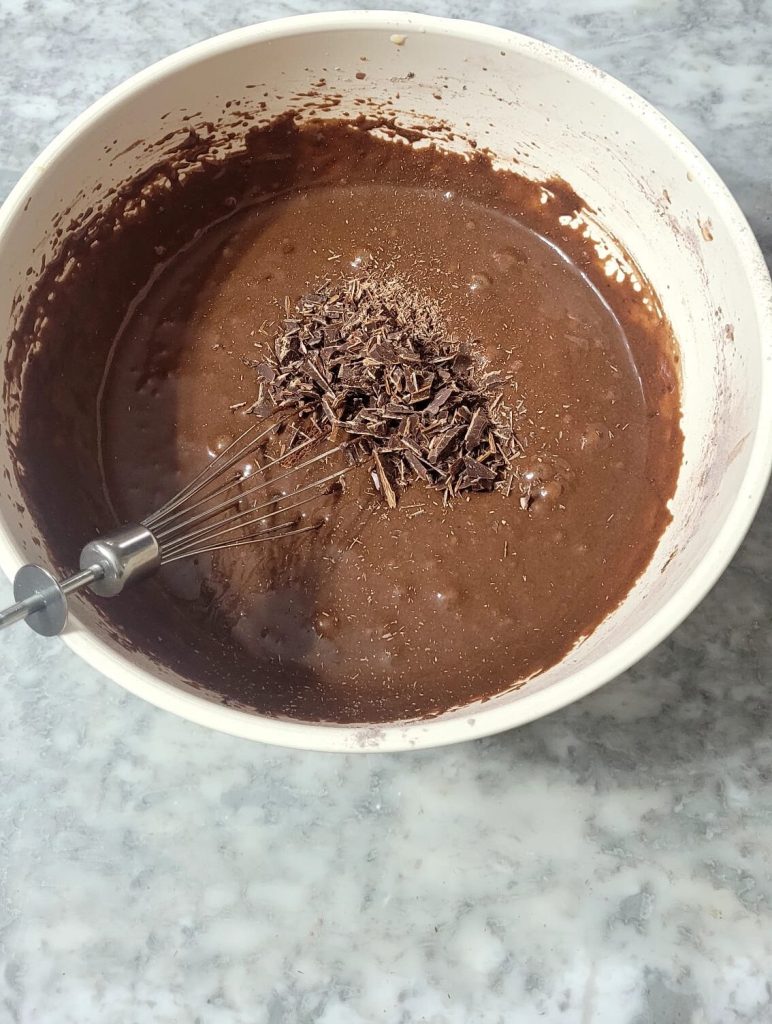 Antes de começar, recomendo preparar o chocolate picado para adicionar à massa e untar e enfarinhar a forma, assim você já tem tudo pronto