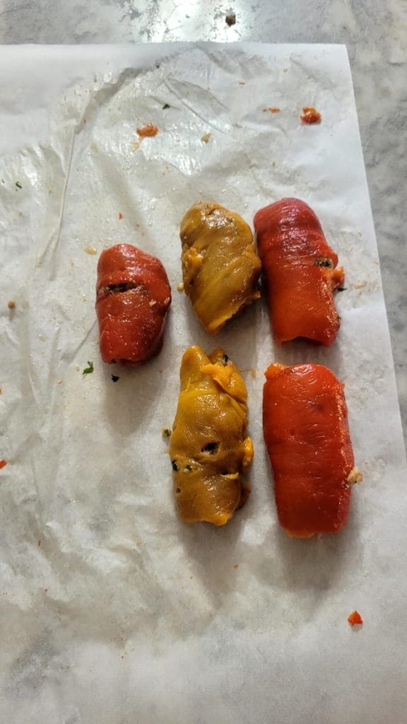 Deixe-os esfriar por alguns minutos antes de servir e desfrutar dos seus Rolinhos de Pimentão com Linguiça e bom apetite!