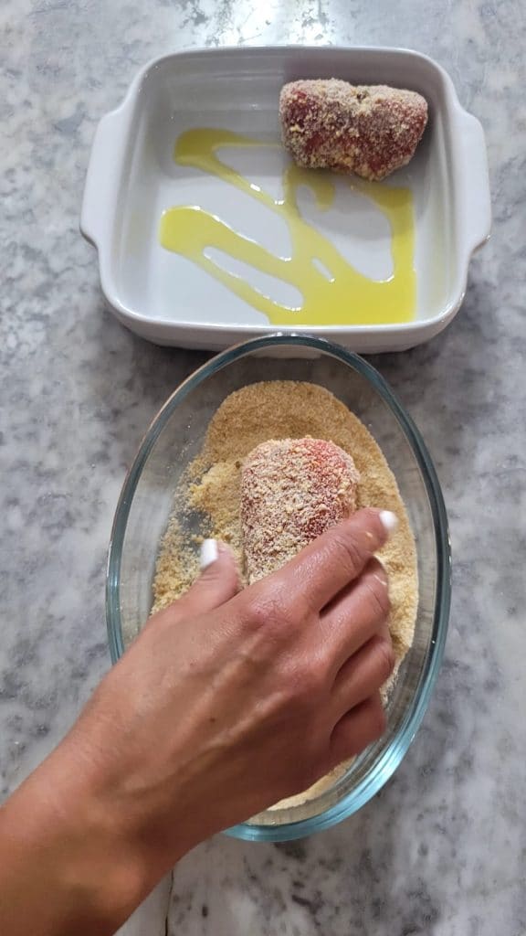 Uma vez pronto e resfriado, adicione o ovo e a farinha de rosca