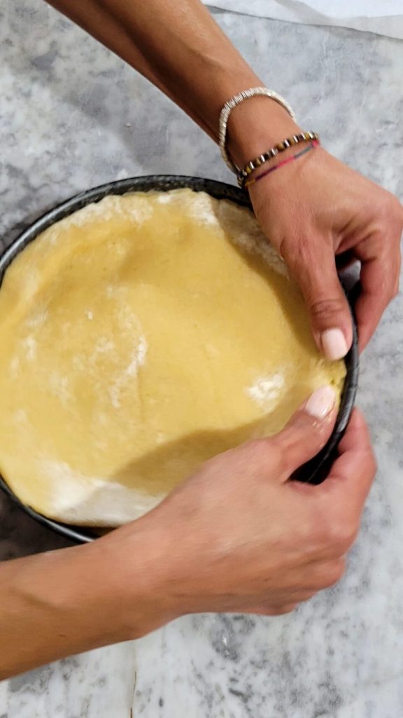 Estenda o restante da massa formando o segundo disco para a cobertura
