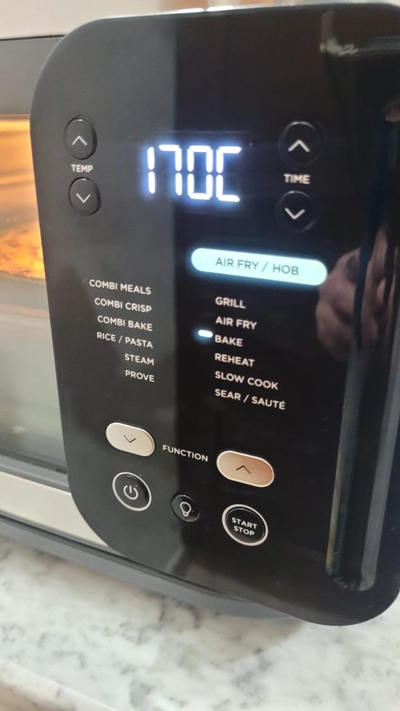 Após o tempo de descanso no congelador, pré-aqueça a airfryer por 2/3 minutos e transfira a forma para a grade ou bandeja