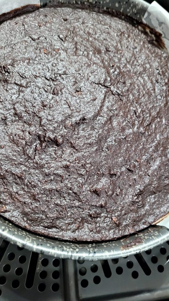 Pré-aqueça o forno e asse a 180° por cerca de 40 minutos. Tal como no cozimento na airfryer, o bolo estará pronto quando as bordas se soltarem da forma
