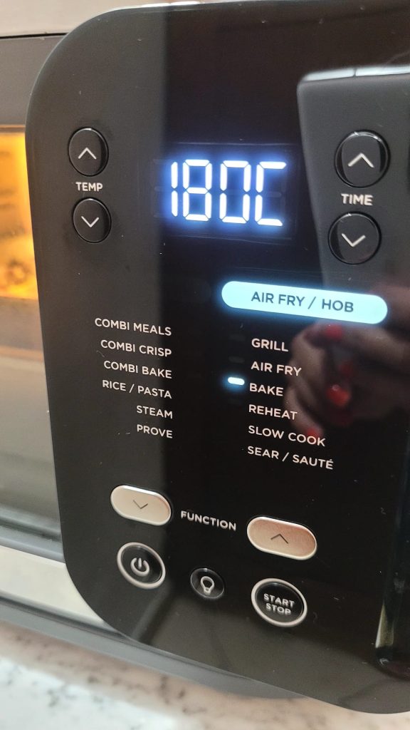 Pré-aqueça a fritadeira por 2/3 minutos (você pode omitir o pré-aquecimento, na Ninja Combi, no programa Bake é automático) e coloque a forma sobre a grelha