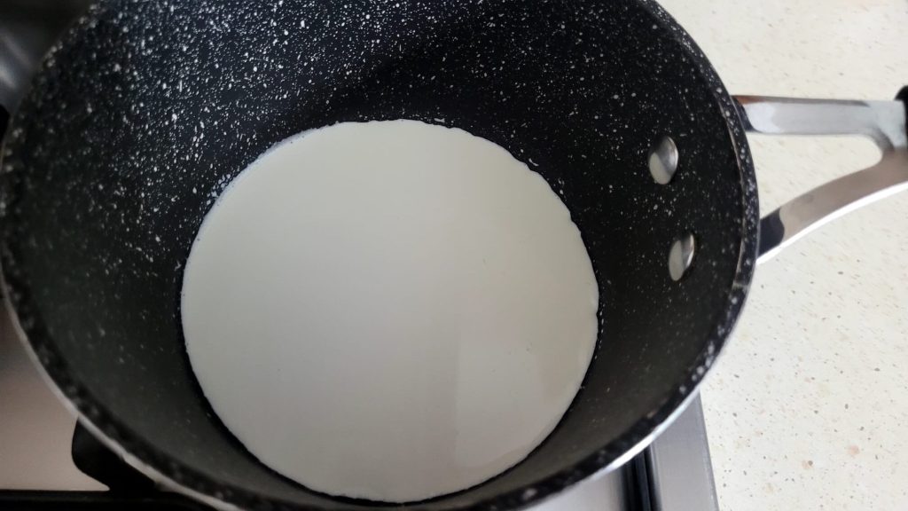 Em uma panela pequena, aqueça 25 ml de creme de leite, esprema a gelatina e dissolva no creme de leite e reserve