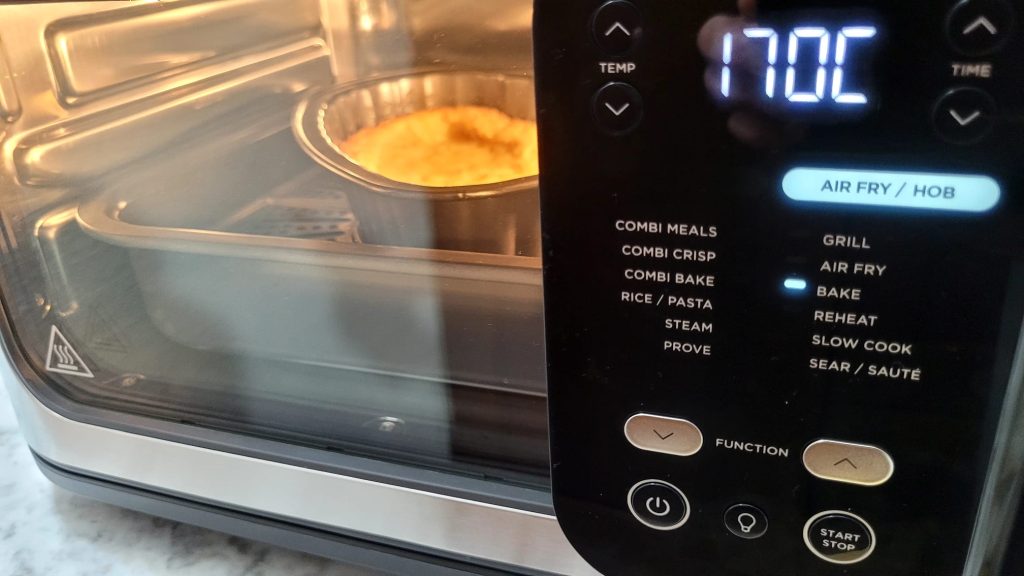 Pré-aqueça a fritadeira por 3 minutos a 190°, insira a forma e cozinhe a 190° por 10 minutos ou até que as bordas da torta estejam douradas