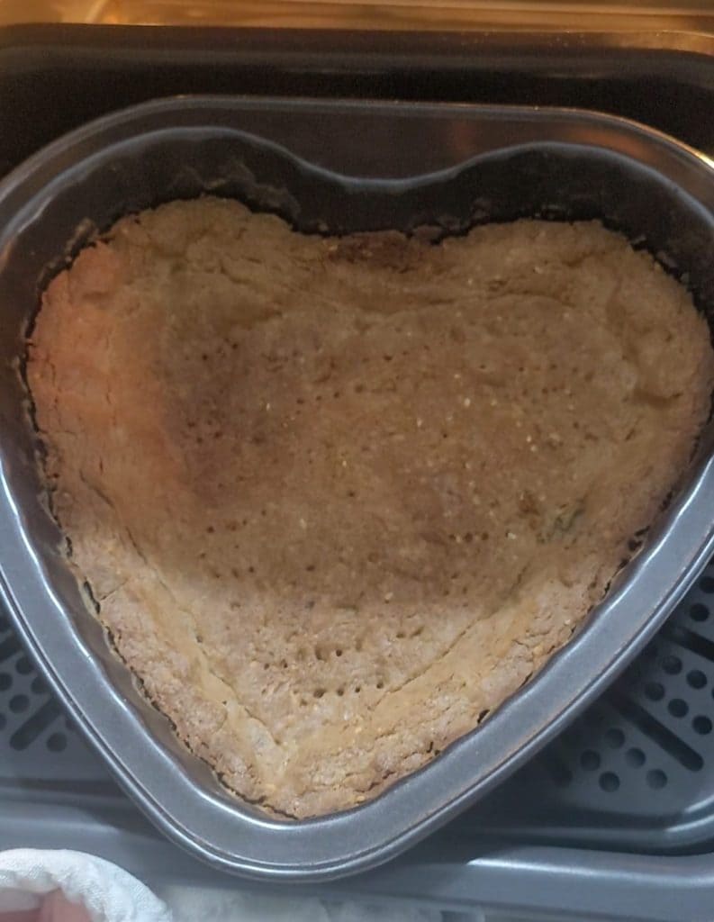 Forma para a cocção da Torta multicereais, frutas e creme de limão em fritadeira a ar