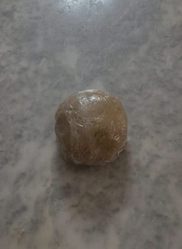 Quando obter uma massa lisa e homogênea, envolva-a em plástico filme para alimentos e coloque na geladeira por meia hora