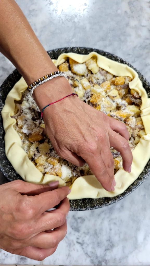Como se prepara a Torta salgada de Abóbora, Batatas e Cebolas de Tropea