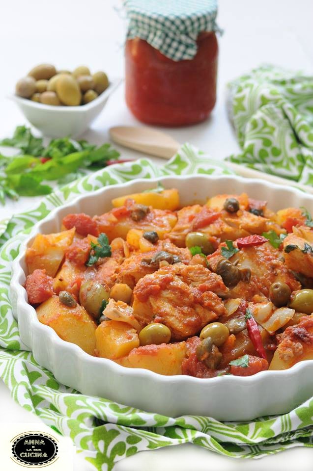 O peixe stocco com batatas e tomate à calabresa é um prato típico desta região, muito saboroso e gostoso com adição de alcaparras e azeitonas verdes calabresas. No sul, é comum cozinhá-lo tanto no verão quanto no inverno. Hoje, proponho esta receita muito convidativa que também é preparada na véspera de Natal com adição de couve-flor e é chamado “peixe stocco alla ghiotta”.