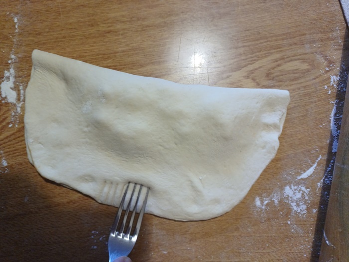 • Dobre ao meio, feche bem com os dedos e depois com os dentes de um garfo.