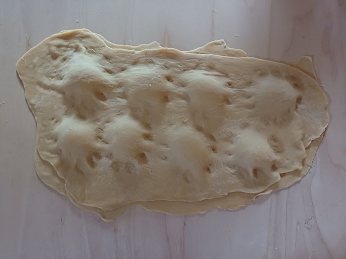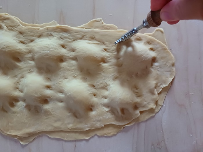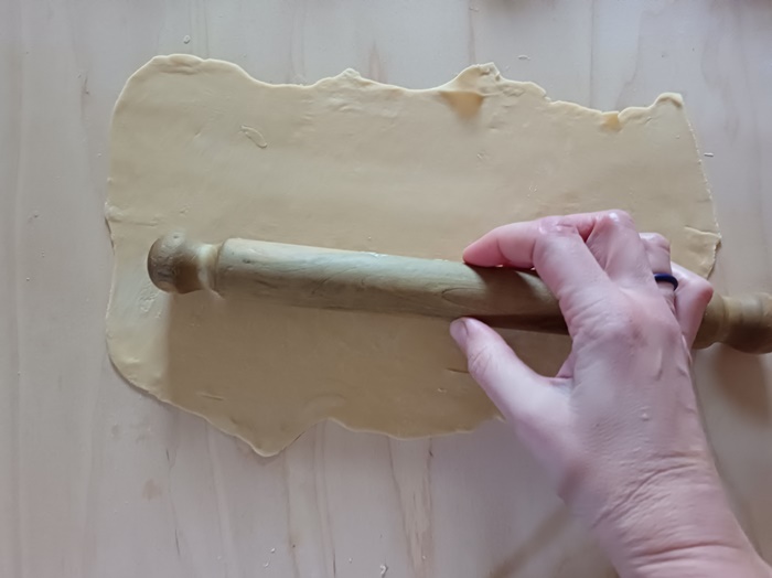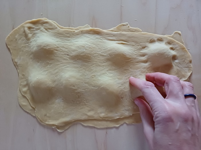 Você também pode usar a máquina de macarrão, passando a massa por todos os números duas vezes até chegar ao penúltimo número.