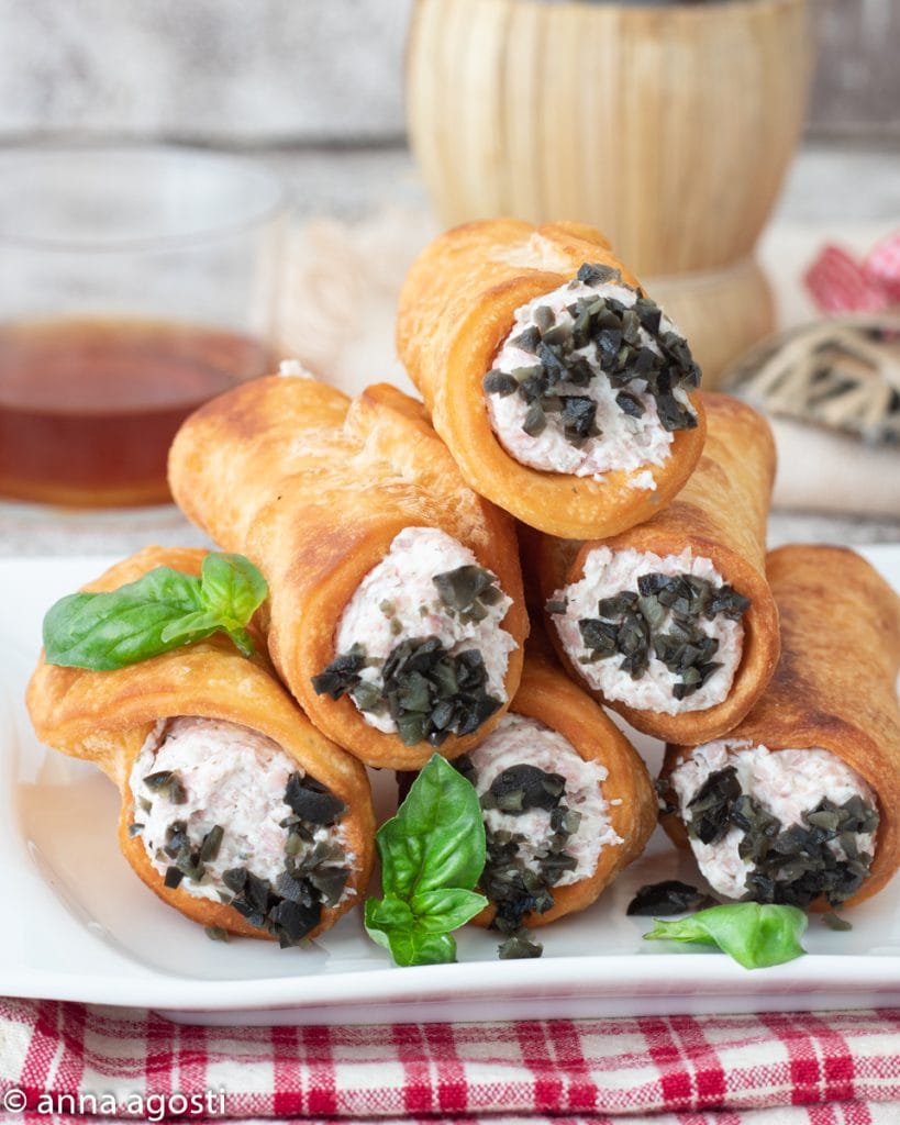 Os cannoli podem ser recheados com creme de pistache, creme de confeiteiro para fazê-los doces ou com mousse de atum ou mousse de manjericão.