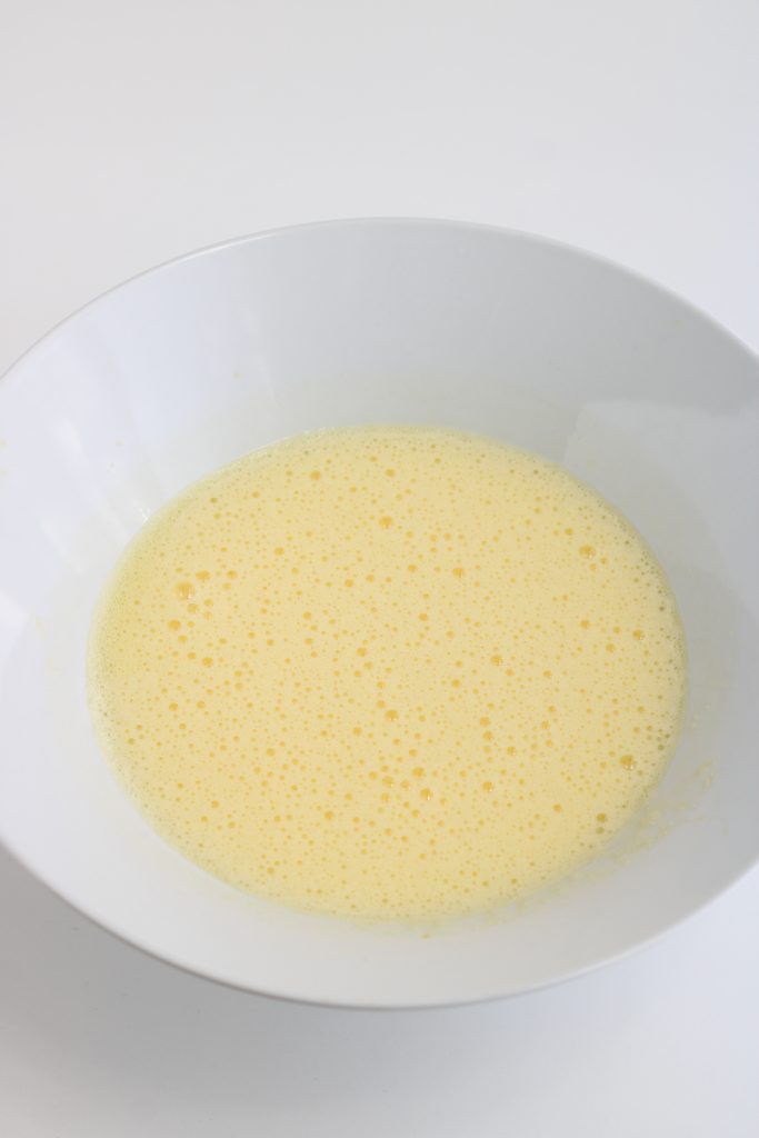 Em uma tigela, bata com um mixer elétrico os ovos com o açúcar, quando ficarem espumosos adicione o iogurte (eu usei sabor baunilha) e uma pitada de sal e continue a bater.