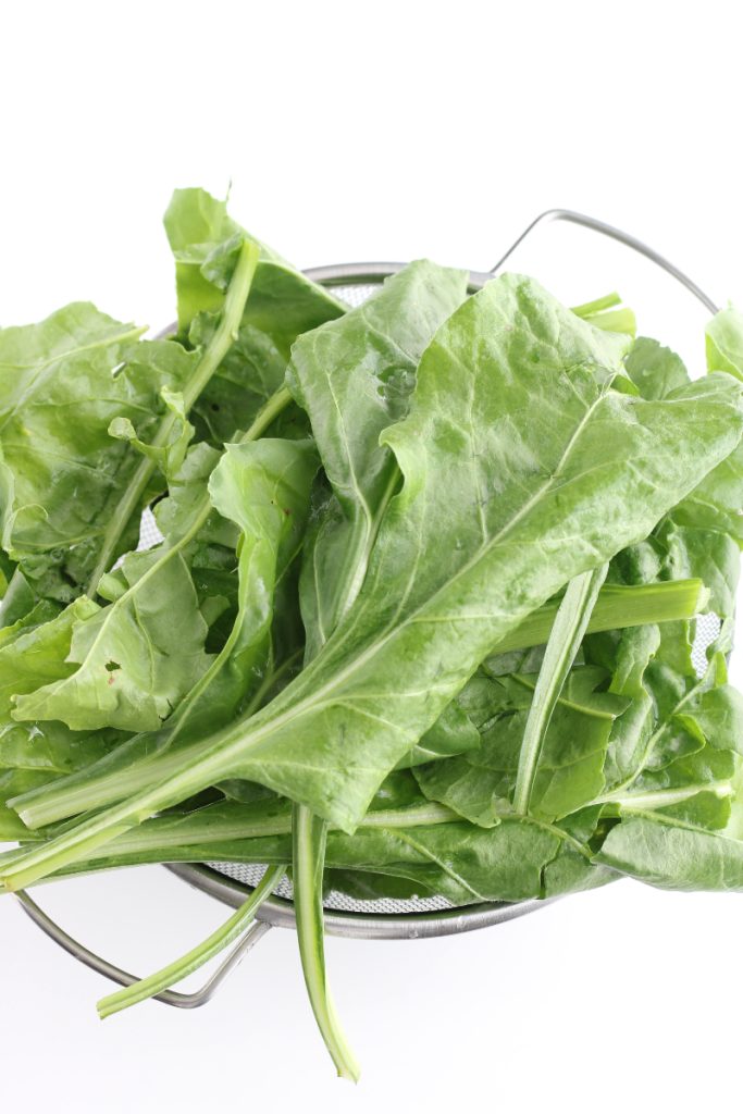 Limpe cuidadosamente as folhas eliminando as danificadas e amareladas, depois corte a parte mais dura do talo e lave bem para eliminar qualquer impureza.