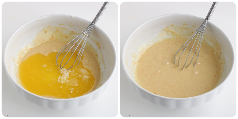 Despeje a manteiga morna em fio e misture até obter uma massa lisa.