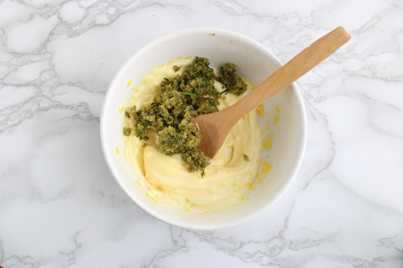 • Adicione os ingredientes triturados à mistura de maionese