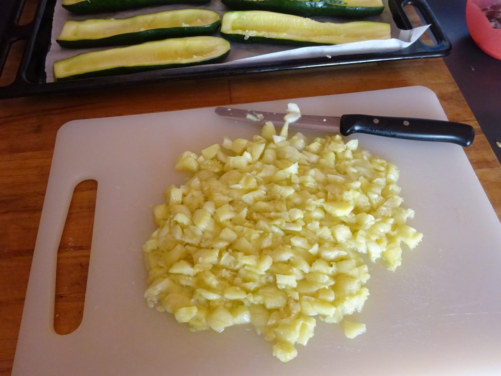 A polpa das abobrinhas que você retirar, pique com uma faca e
