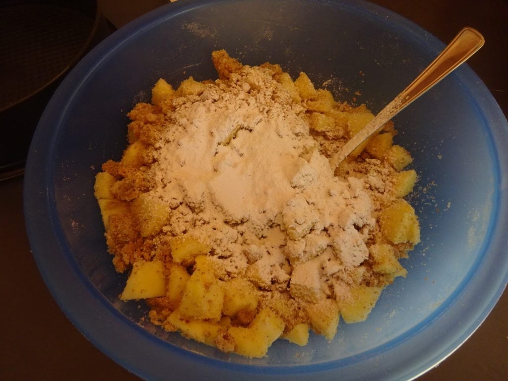 • Despeje a mistura do bolo de maçã e farinha de rosca, nivele bem e leve ao forno pré-aquecido a 180° por 40 minutos.