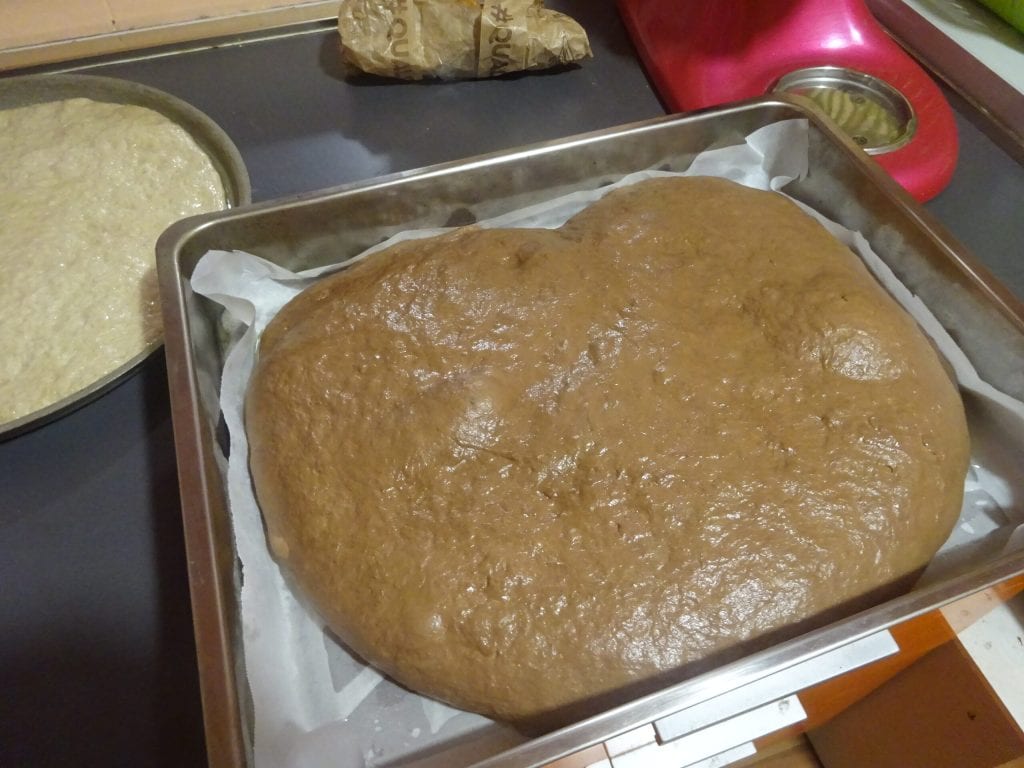 Após as últimas horas de descanso, transfira a massa para uma assadeira bem untada ou forrada com papel manteiga.