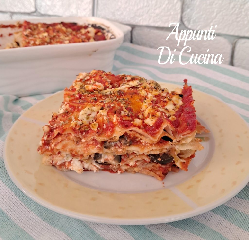 Lasanha de pão carasau e feta, uma lasanha leve mas com um sabor marcante devido à presença do feta grego e do orégano usado para temperar o molho de tomate, outro ingrediente principal desta receita. Trata-se de uma receita que mistura duas culturas mediterrâneas: a sarda com o pão carasau temperado com um molho tipicamente grego.