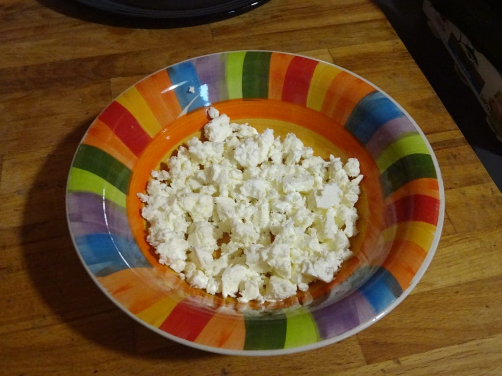 O feta pode ser substituído por queijo de cabra em pedaços.
