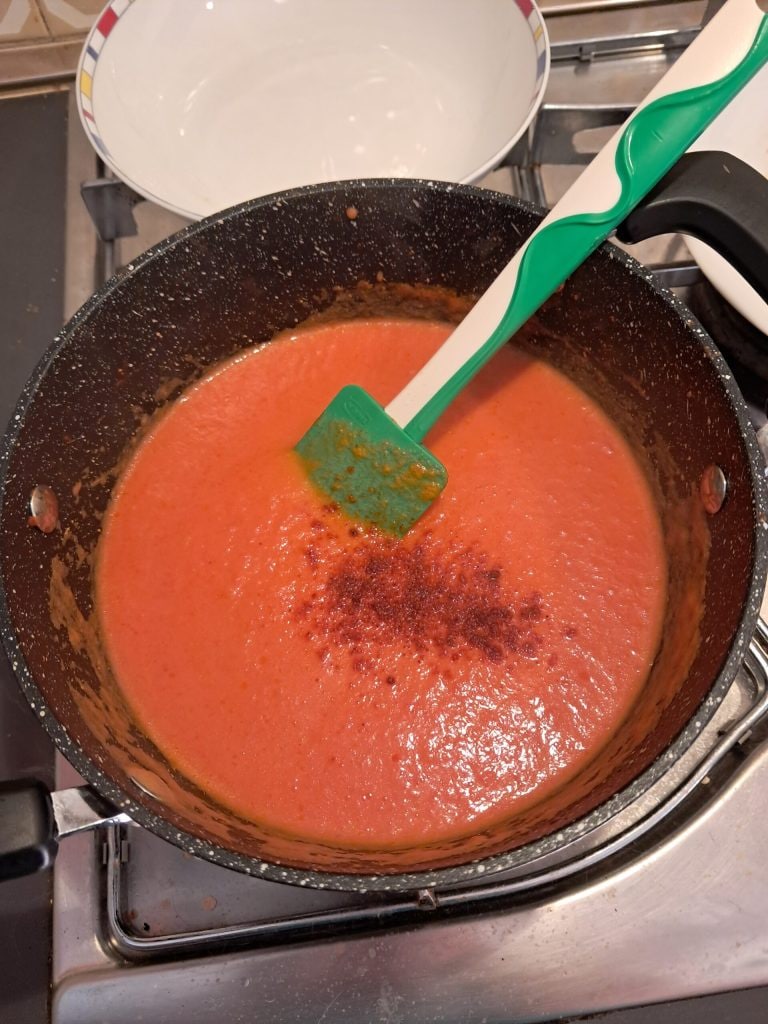 E voilà… a sopa cremosa de tomate está pronta para ser servida.