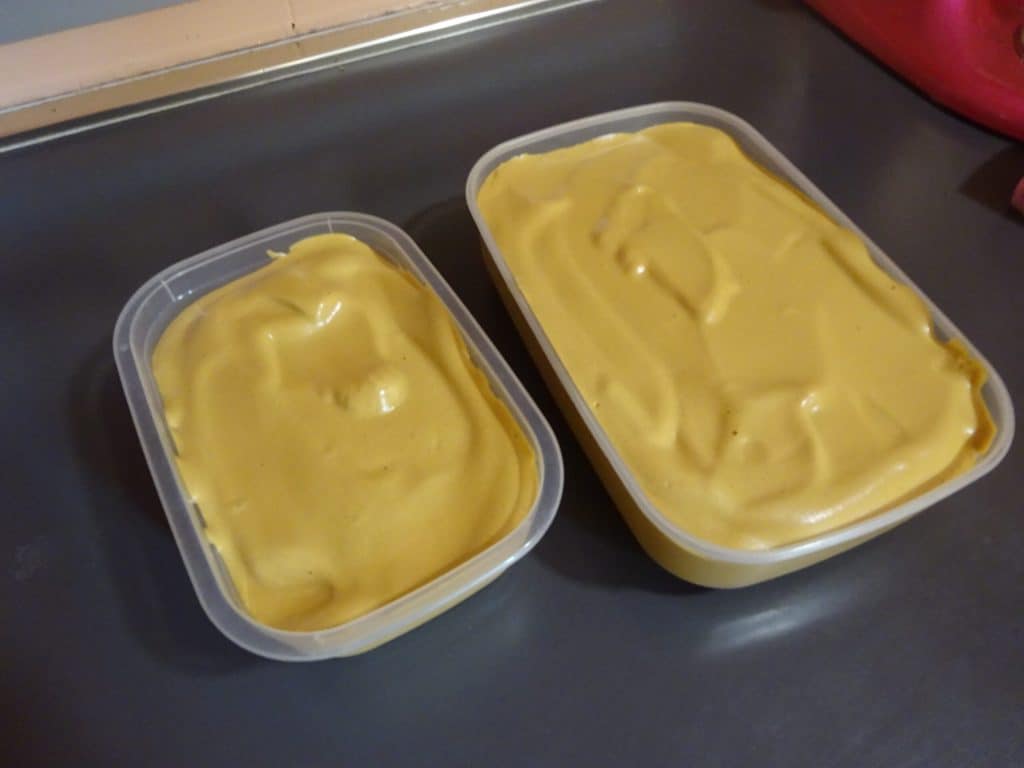 Despeje o creme em potes de plástico ou vidro adequados para o freezer.