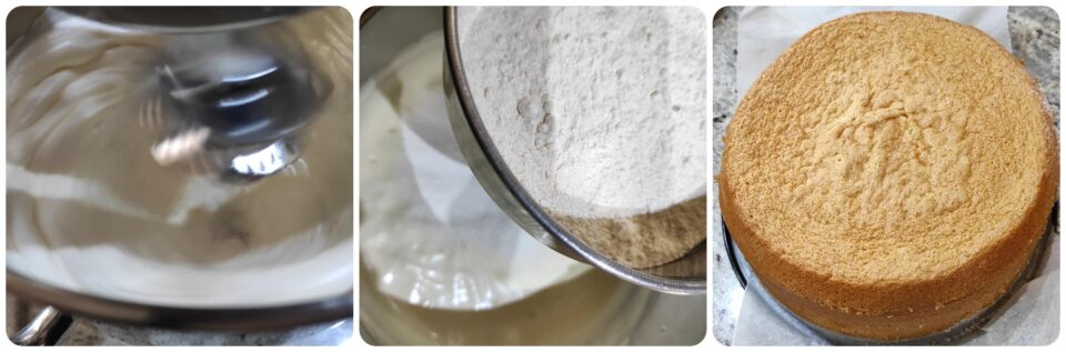 Peneire a farinha duas vezes e adicione-a à mistura aos poucos, mexendo com uma espátula de baixo para cima.