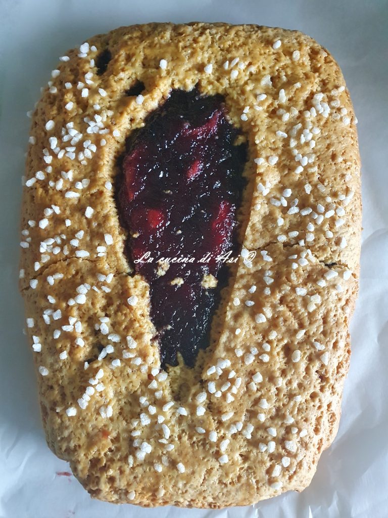 O recheio do bensone receita doce de Modena é opcional, mas eu, que tinha na geladeira uma maravilhosa geleia de frutas vermelhas do bosque, não resisti e coloquei em grande quantidade, talvez demais!