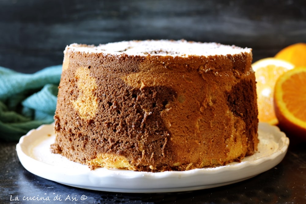 Um novo bolo super fofo chiffon cake com laranja e chocolate, delicioso assim com uma simples polvilhada de açúcar de confeiteiro, mas que podemos servir com um creme inglês ou com um creme de laranja para enfatizar o sabor do cítrico!