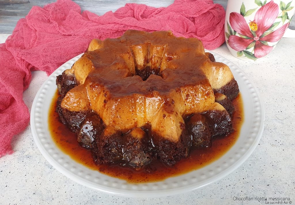 Depois de pronto e frio e após um repouso adequado na geladeira, viro o doce de colher chocoflan mexicano em um prato de servir e…