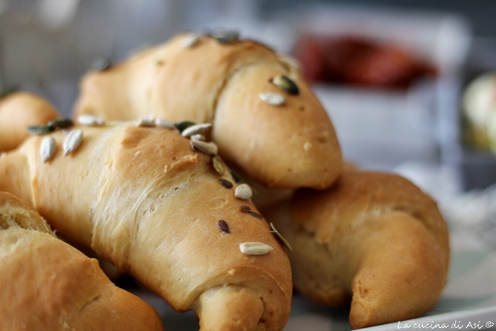 Para as brioche salgadas rápidas sem fermento, adicionei sementes oleaginosas variadas depois de molhá-las ligeiramente com água, porque são gostosas e bonitas de ver, certo?