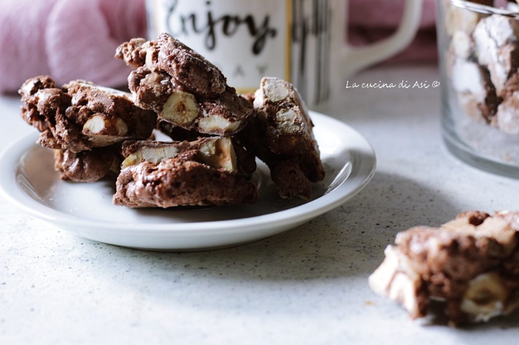 Estes biscoitinhos com frutas secas requerem poucos ingredientes (açúcar de confeiteiro, avelãs peladas e torradas, clara e também um pouco de cacau em pó), mas precisam de um tempo de descanso, de no mínimo uma hora até um dia inteiro.