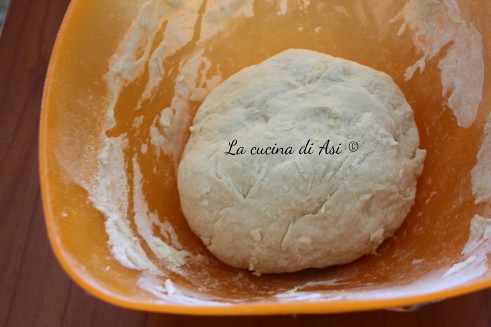 Colocamos dentro o pãozinho do pão fácil de fazer sem amassar obtido após as dobras e mais, polvilhamos com um pouco mais de farinha e fechamos os bordos do tecido e deixamos levedar por 90/120 minutos ou até dobrar de volume.