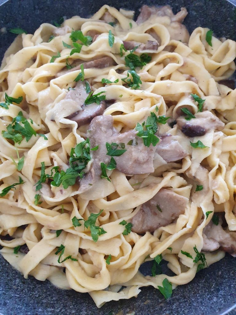 9) Aqui está pronto um prato de massa fresca feita à mão como as tagliatelle com o molho de cogumelos porcini salteados na frigideira!