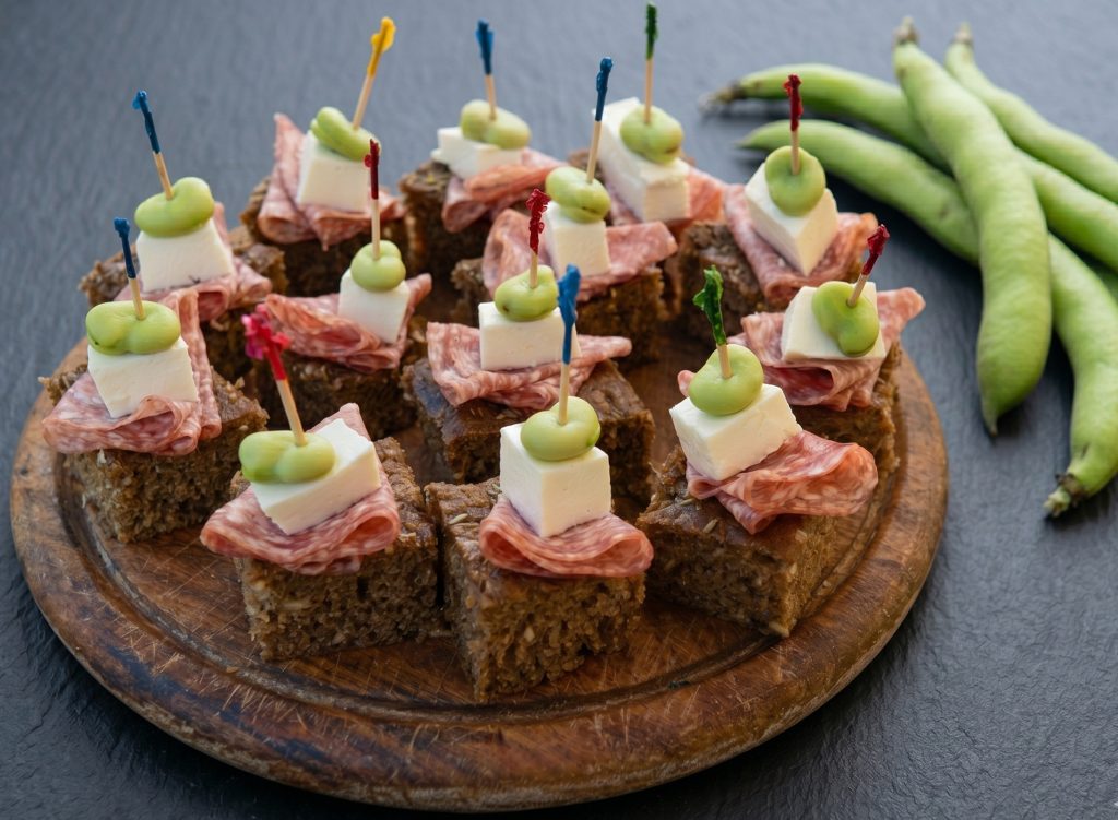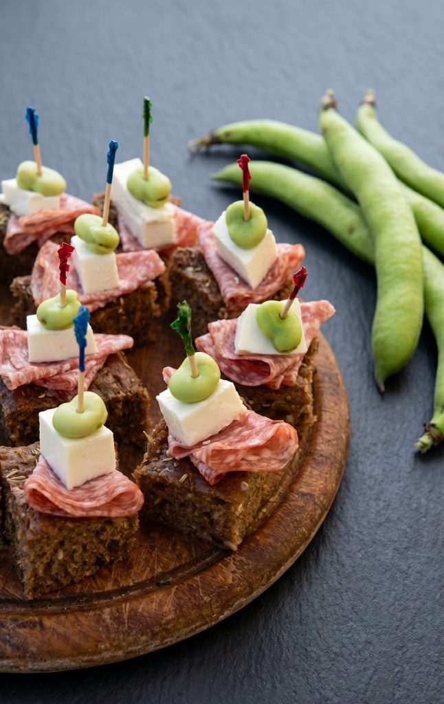 Finger food de focaccia integral: o aperitivo perfeito com favas, salame e pecorino