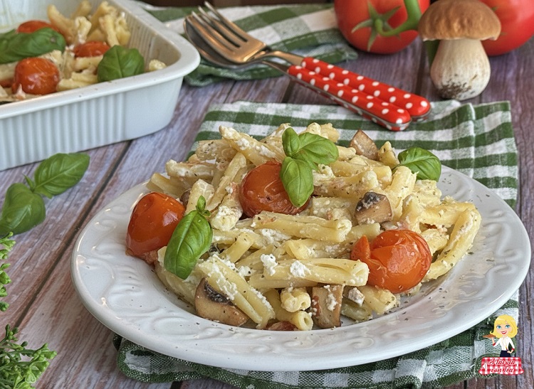 Massa com Cogumelos, Feta e Tomatinhos: a receita deliciosa em uma única assadeira