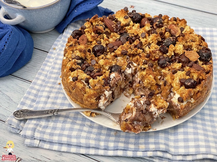 A Sbriciolata com sobras de Pandoro (ou Colomba) recheada com ricota e gotas de chocolate é uma sobremesa simples e rápida de preparar, perfeita tanto para apresentar de forma original esses doces indispensáveis das festas quanto para reaproveitar as sobras na vibe “nada se joga fora”!