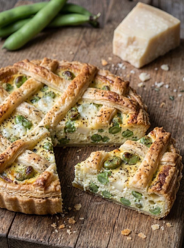 Torta rústica com massa folhada e favas: o segredo para uma base crocante e sequinha