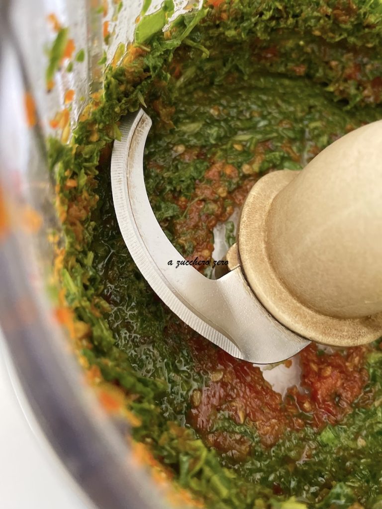 Para não preparar um pesto que seja excessivamente calórico, as quantidades de tomates secos e de óleo devem ser reduzidas. Além disso: se usar tomates secos comprados, certifique-se de que não contenham açúcar.