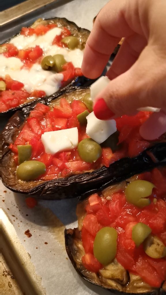 Agora estamos prontos para assar. Acendemos o forno em modo ventilado e, uma vez quente a 180 graus, deixamos assar por mais 10/15 minutos nossos barquinhos de berinjela.