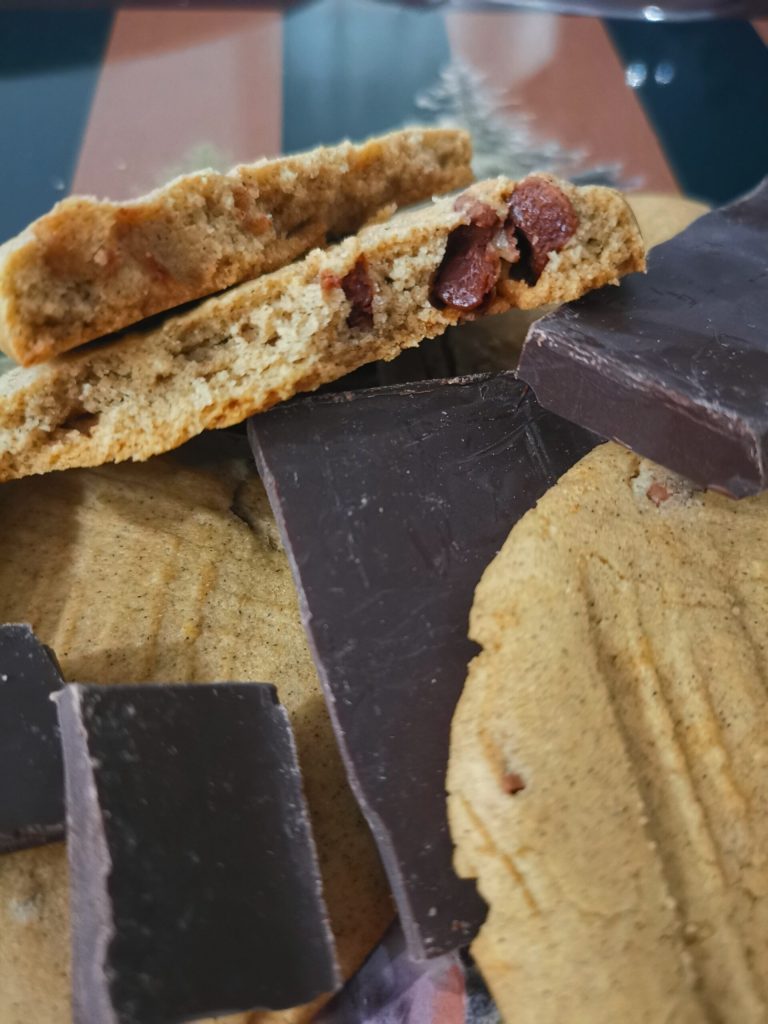 Visto que tem chocolate, não pense que são biscoitos super calóricos, porque não é o caso.