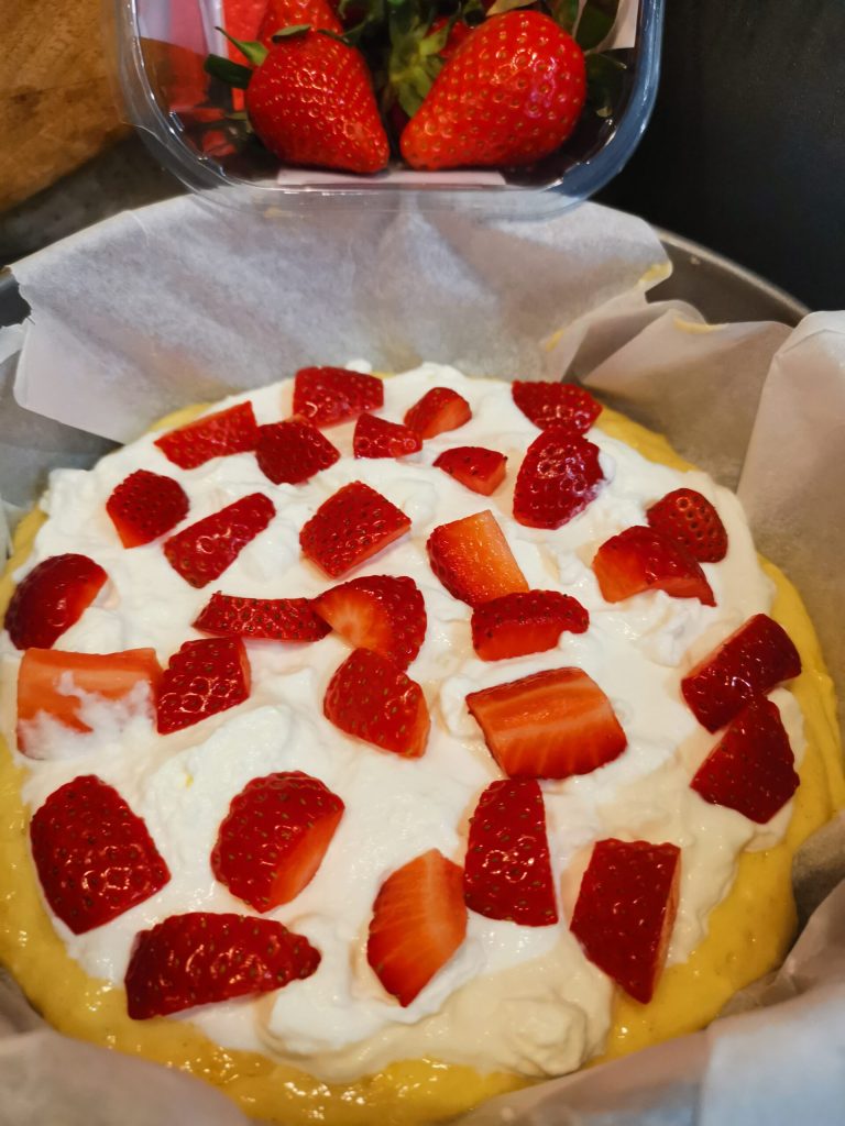 Bolo de morango, creme de leite e ricota