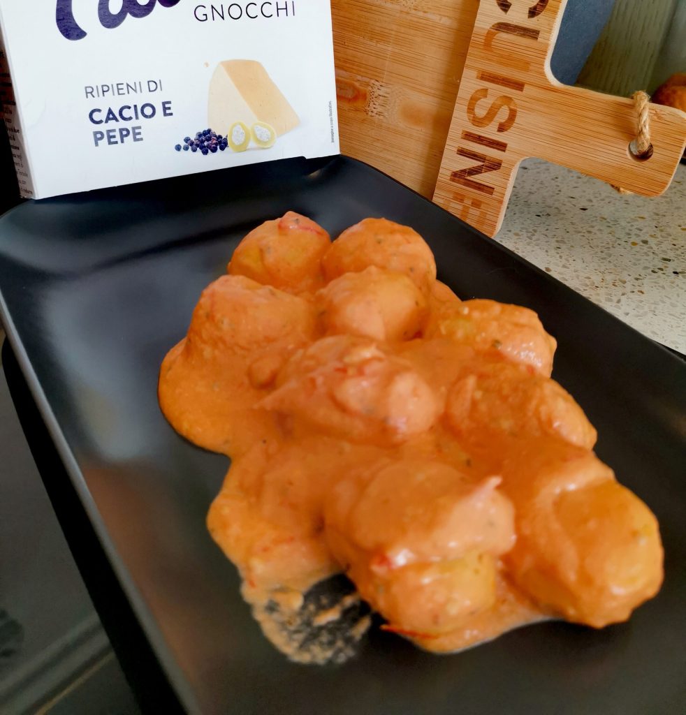 Desta vez, usei nhoques recheados que tornaram o prato mais rico, mas este molho será especial mesmo usando massa seca ou simples nhoques de batata.