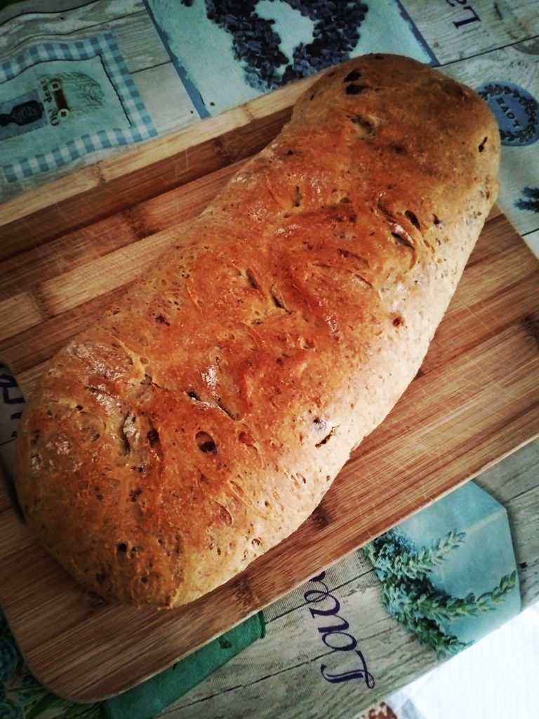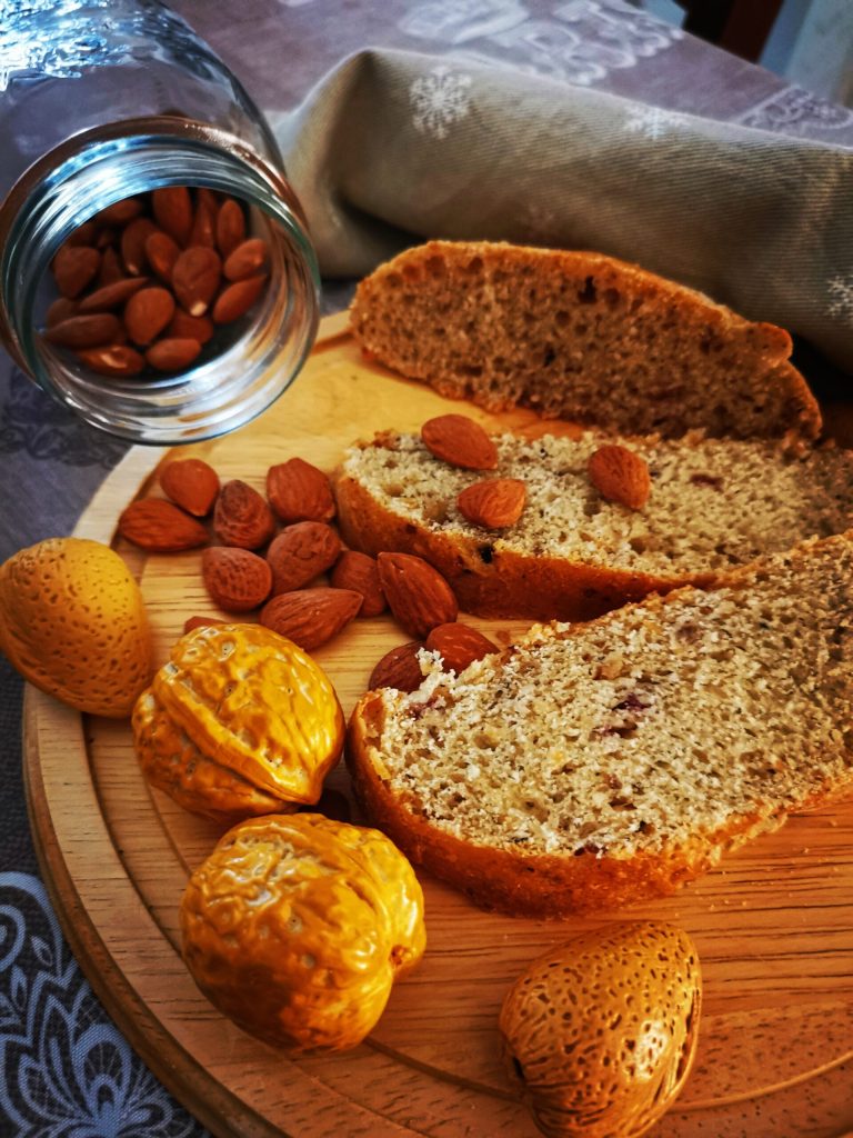 O pão de frutas secas se conserva por 2/3 dias em um saco de papel de pão ou um recipiente com tampa. Quando eu dizia que você pode acompanhá-lo nas refeições ou no café da manhã porque, como você viu nos ingredientes, não é doce, mas também não é salgado.